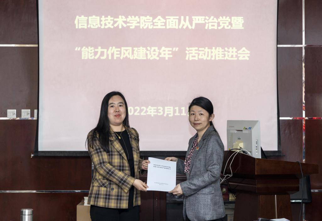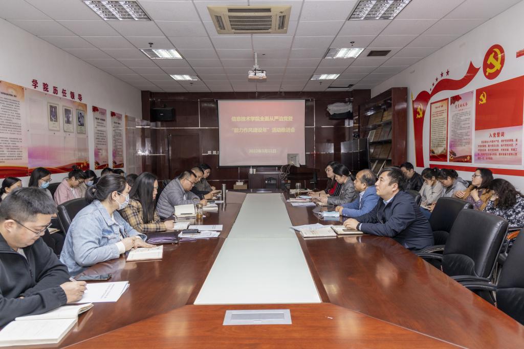 本网讯(文/李倩倩 图/秦东仁)新时代呼唤新作风,新征程增添新作为。为全面贯彻落实党的十九届六中全会精神、十九届中央纪委六次全会精神、十一届省纪委二次全会精神及学校全面从严治党工作会议精神,更好地在2022年开启新学期的各项工作,2022年3月11日上午,信息技术学院在A722召开2022年全面从严治党暨“能力作风建设年”活动推进会。校党委委员、副校长苗明三出席此次会议,学院全体领导班子、全体教职工参加会议。会议由学院副院长王晓燕主持。