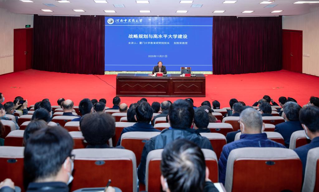 本网讯(文/赵会杰 图/秦东仁)2020年11月21日下午,我校党委理论学习中心组学习(扩大)会暨百家讲坛报告会在图书馆第一报告厅举行,厦门大学教育研究院院长、博士生导师别敦荣教授应邀来我校作《战略规划与高水平大学建设》专题报告。全体在郑校领导,全体中层干部,各部门、各单位相关科室科级干部参加报告会,会议由校党委副书记、工会主席张小平主持。
