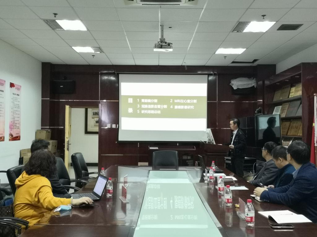 随后,信息技术学院党豪博士以“医疗影像研究进展”、仲景青年骨干A类博士李国志从“影像处理算法的优化”、张格博士以“医学图像分割的不确定性”,宋学坤博士以“医学影像组学&生物信息学”为题分别汇报了各自的科研工作成果。