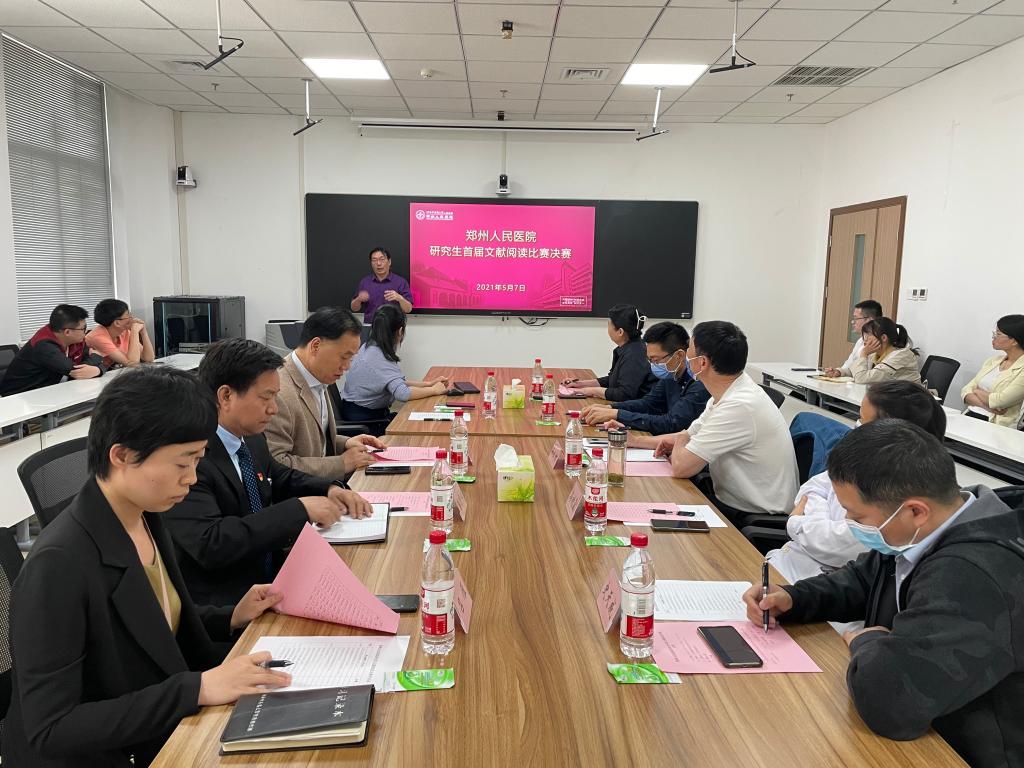 本网讯(文/图 裴青燕)为进一步提高研究生文献阅读能力和对学术前沿知识的储备,培养研究生的科研意识和创新潜力,激发研究生科研思维素养和转化科研成果的水平,营造浓厚的科研氛围和良好的学风,第五临床医学院于日前举办了首届研究生文献阅读大奖赛。2021年5月7日,大赛复赛顺利举行。第五临床医学院党委副书记吕雁、副院长张思森、李中心出席,大赛邀请到新乡医学院儿科学院院长李树军,我校人民医院肿瘤内科主任梅家转、血液内科主任郭树霞、神经内科一病区负责人付胜奇、皮肤科史天威担任评委,五临床教学办主任杨季菱主持比赛。经过初赛的比拼,14名选手脱颖而出进入决赛环节,全院在院研究生观摩比赛。
