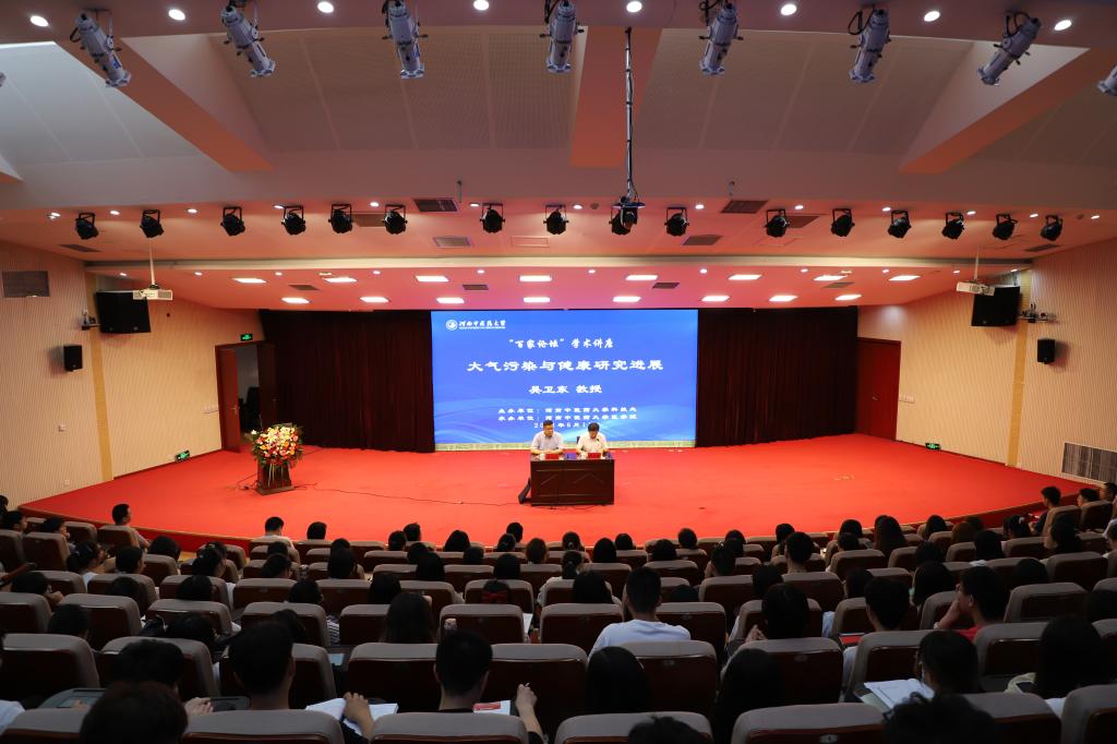 本网讯(文/王白燕 图/荣文慧)为学习贯彻落实好《“健康中国2030”规划纲要》,活跃学校科研学术氛围,进一步推动我校预防医学专业建设与人才培养,提升我校学科建设和专业建设水平,2021年6月11日下午,新乡医学院公共卫生学院院长吴卫东应邀作客我校“百家论坛”,作题为《大气污染与健康研究进展》的学术讲座。此次讲座由医学院党委书记高剑峰主持,院长李根林,院党委副书记李丹,副院长孙俊波、闫国立,医学院预防医学学科教师及医学院本科学生参加讲座,现场座无虚席。