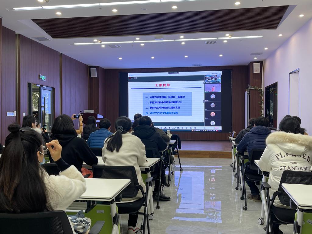 本网讯(文/管雨杰图/邵沛璐)2021年12月10日下午,由科学技术处主办、药学院承办的“百家论坛”在7号楼远志学堂举行,解放军总医院第五医学中心/全军中医药研究所研究员、所长肖小河应邀作线上专题讲座,线上、线下近百名师生参加讲座。讲座由药学院崔瑛教授主持。