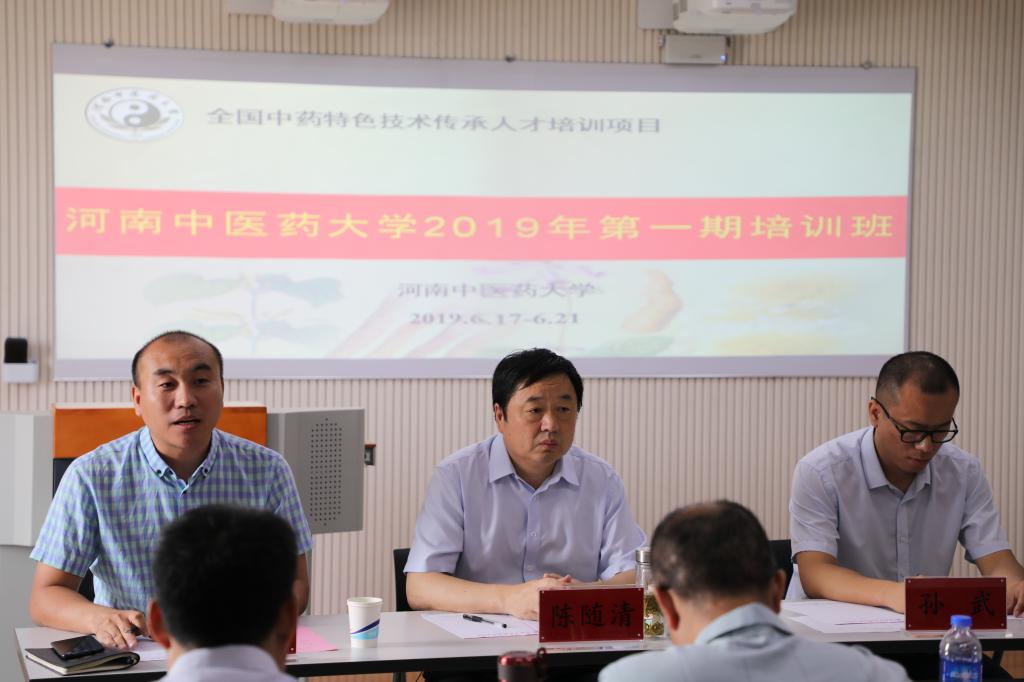 河南省中医管理局科教处孙武,药学院党委书记陈随清、副院长纪宝玉参加开班仪式,仪式由纪宝玉主持。孙武对参加本次培训的学员表示热烈欢迎,希望大家能够在本次学习中学有所获;陈随清给大家介绍了药学院的发展情况;纪宝玉对培训班的课程安排进行了重点说明。